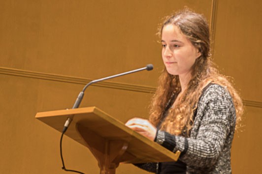 Daniella Mikanovsky, a second year student at McMaster University, recited her poem, "Ner Tamid" at the multi-faith vigil held at Temple Anshe Sholom on October 30 to honour the victims of the Pittsburgh massacre. An active member of McMaster Hillel and frequent contributer to spoken word poetry events, Mikanovsky told the HJN that visualizing her own synagogue with all the power cut off but for the glow of the eternal light helped set the scene from which she developed her poem. "I was reminded of the attacks in Charleston and Quebec City," she wrote, "but I never understood the pain of those communities until today. That’s why I wanted to spread a message of unity in my poem."
