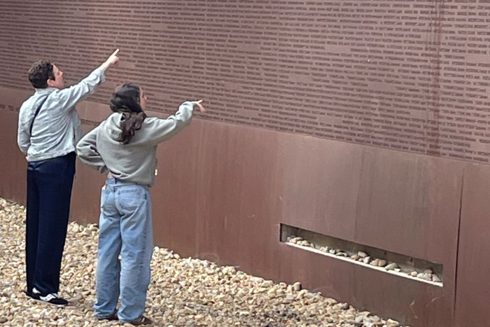 CAPTION The author’s family members at the Wall of Names in Debrecen, Hungary.
