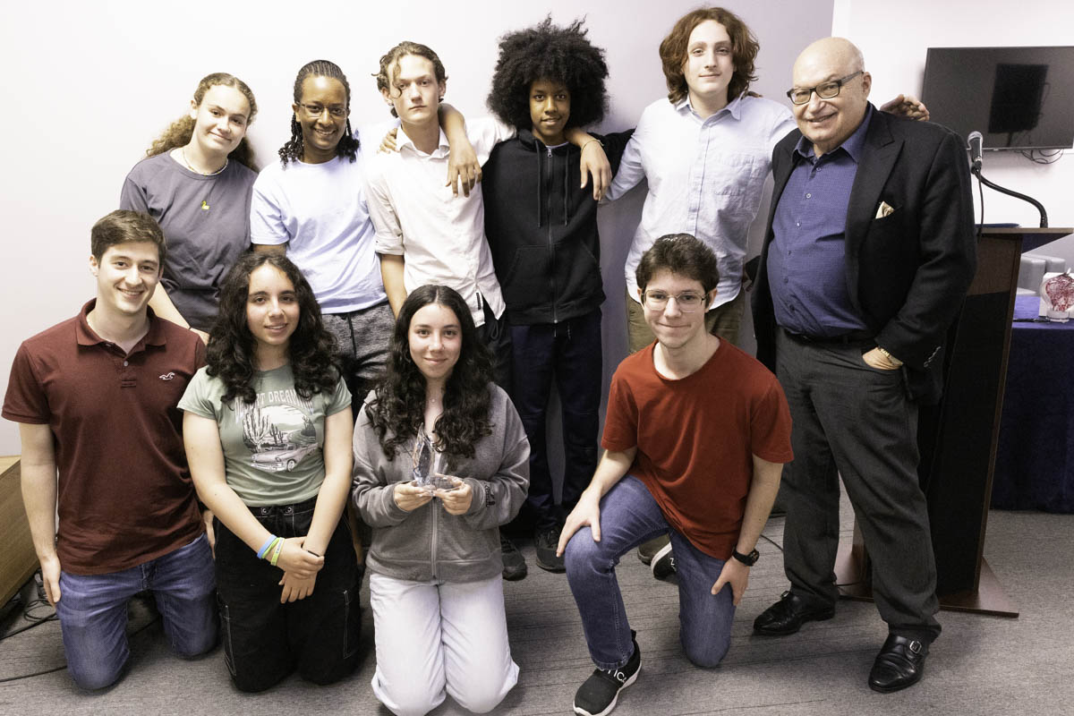 CAPTION: BBYO members pose with outgoing president Howard Eisenberg and adviser Jack Rosenbaum (front row, left) at Federation’s Shem Tov awards ceremony, where they were honoured with the President’s Award.