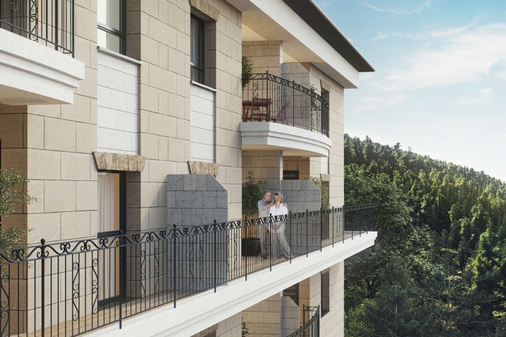The luxurious, high-end apartments are equipped with “smart” technology and feature high ceilings, arches and picture windows that bring the breathtaking view inside. Spacious balconies or a garden — take your pick. From the recessed, glare-proof lighting in every room, to the fully accessorized kitchen and double bath and toilet facilities, it’s clear the founders have invested thought into each and every detail.