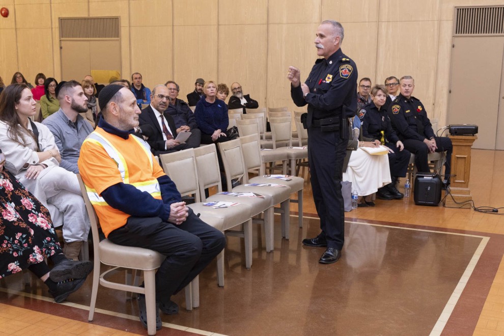 More than 120 people attended a town hall at the Adas Israel on Nov. 2 to hear from Hamilton Police Services and the Ontario Provincial Police what measures they have put in place to protect the Jewish community from antisemitic hate crimes.